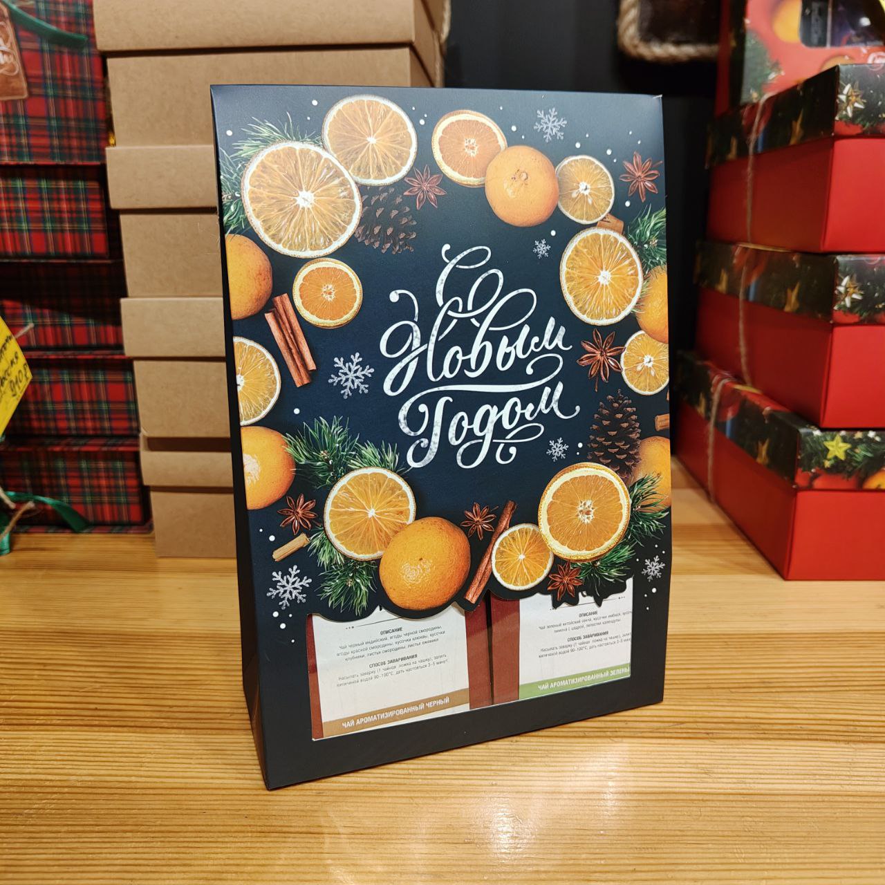 Подарочный чайный набор 3 сорта чая С Новым годом с апельсинками